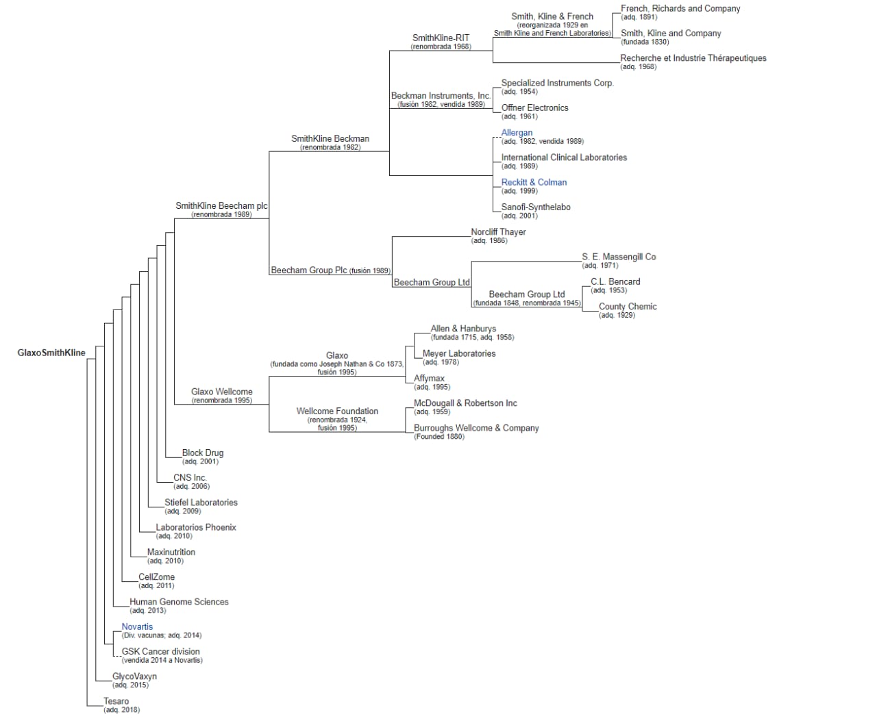 GlaxoSmithKline es una empresa británica de investigación bioquímica, así como de productos farmacéuticos, para el cuidado dental y de cuidado de la salud, fundada en el año 2000 a través de la fusión de la farmacéutica Glaxo Wellcome (1995) y SmithKline Beecham (1989); su sede se encuentra en Brentford, Londres en Reino Unido.